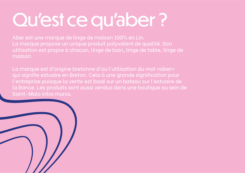 Lors de ma troisième année de bachelor création numérique j'ai eu l'occasion de travailler sur l'identité de marque de Aber.